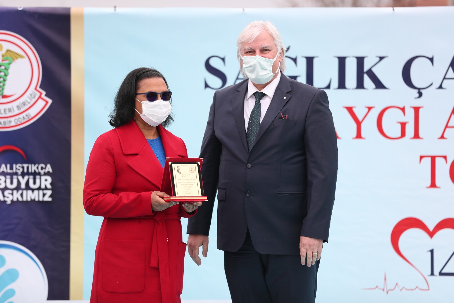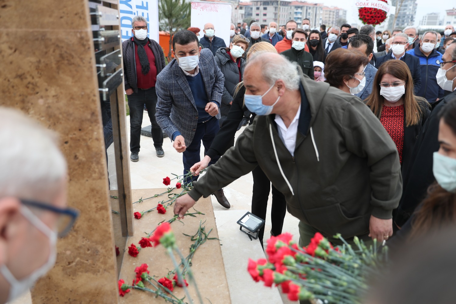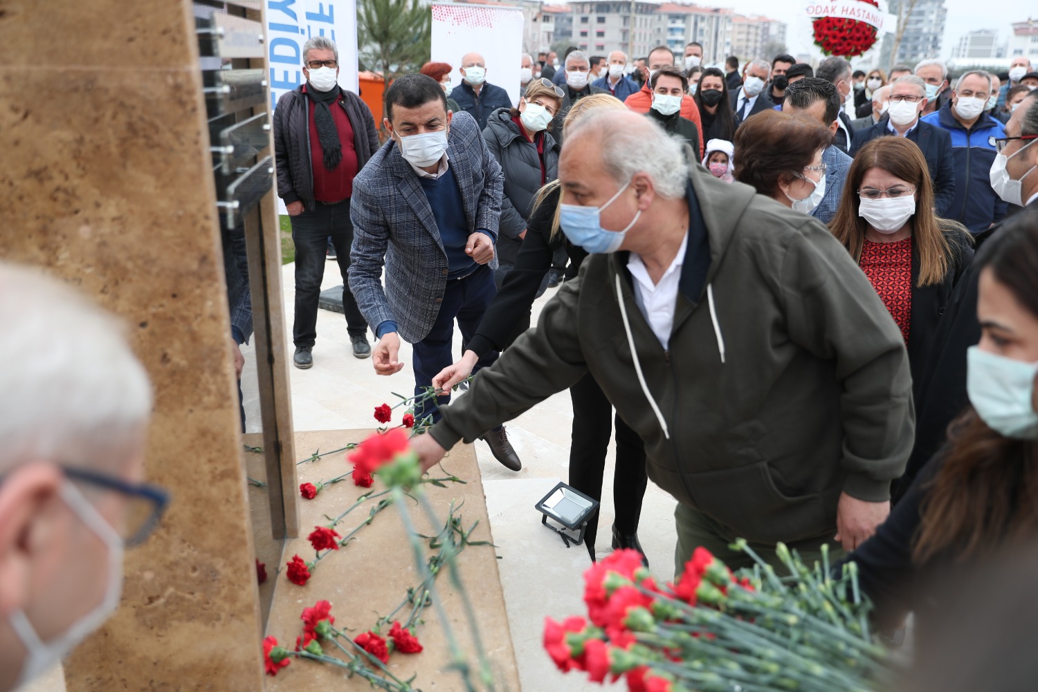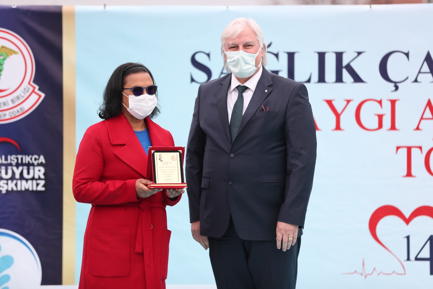 COVİD NEDENİYLE HAYATINI KAYBEDEN SAĞLIK ÇALIŞANLARI ADINA YAPTIRDIĞIMIZ ANITIMIZIN 14 MART TIP BAYRAMI GÜNÜ AÇILIŞINI GERÇEKLEŞTİRDİK VE MESLEĞİNDE 25.40.50. YILI DOLDURAN MESLEKTAŞLARIMIZ İÇİN PLAKET TÖRENİMİZİ YAPTIK.