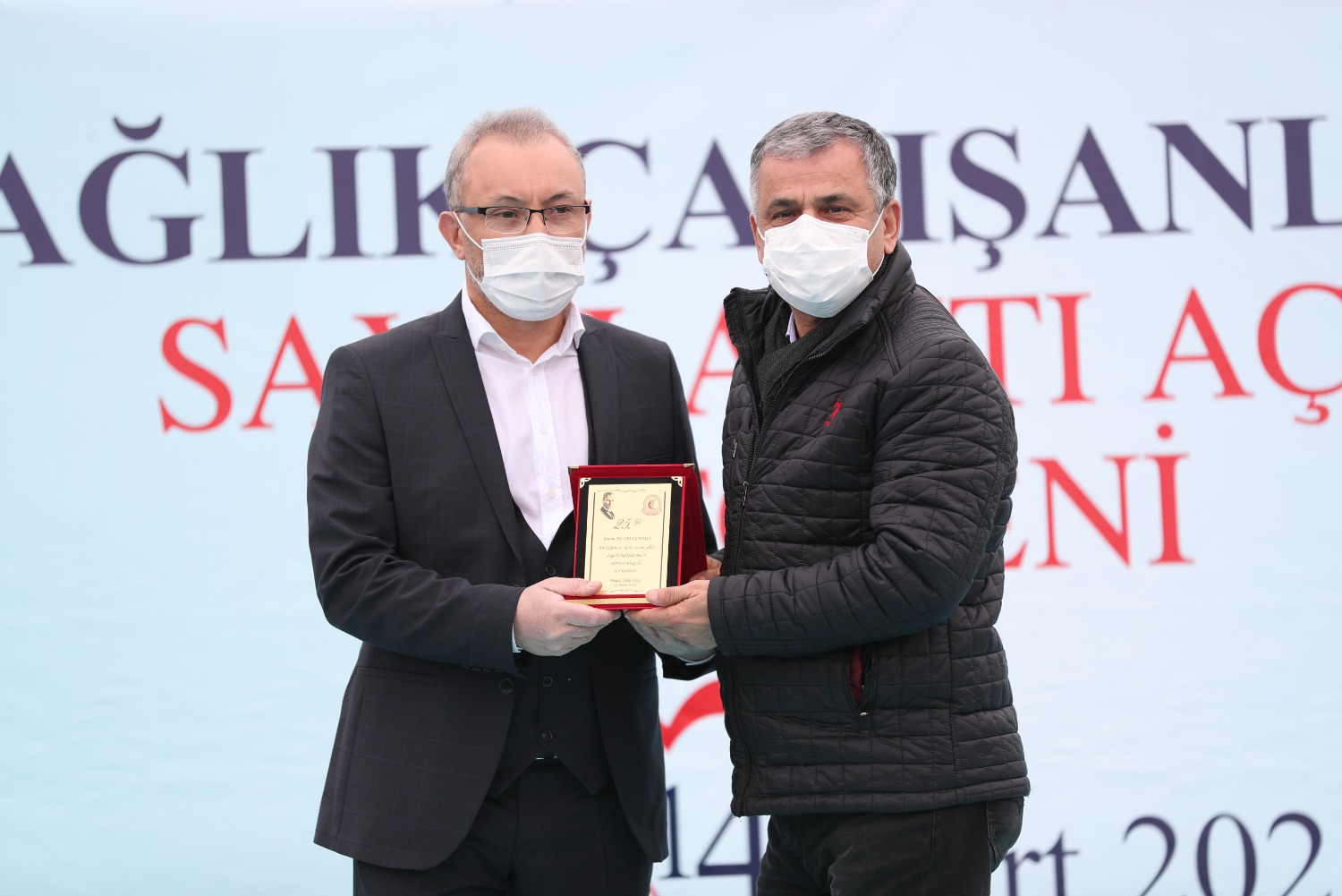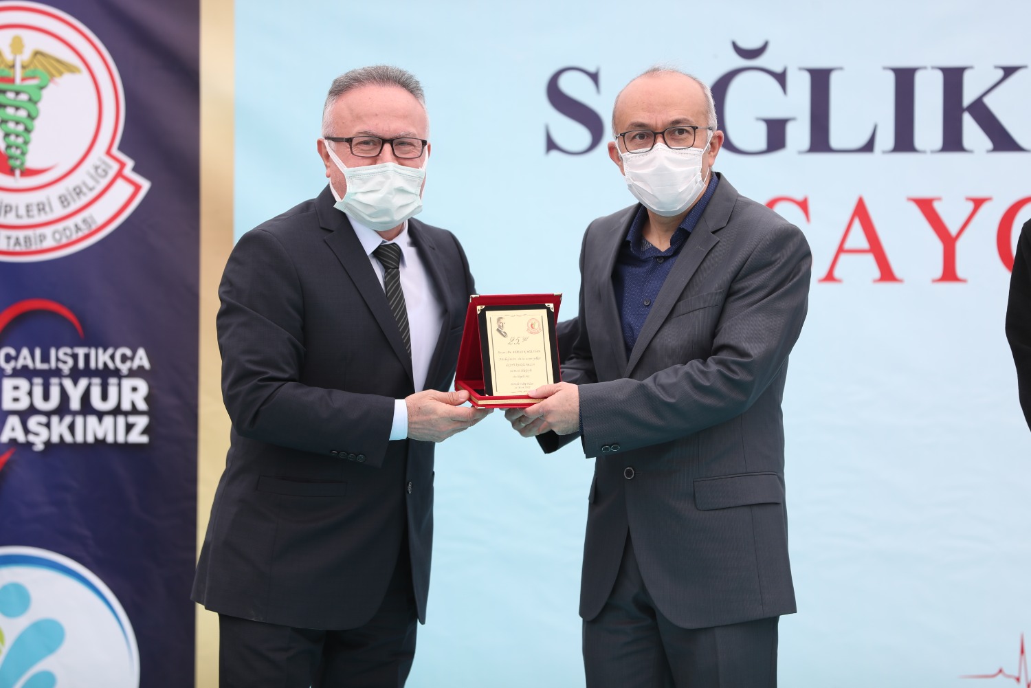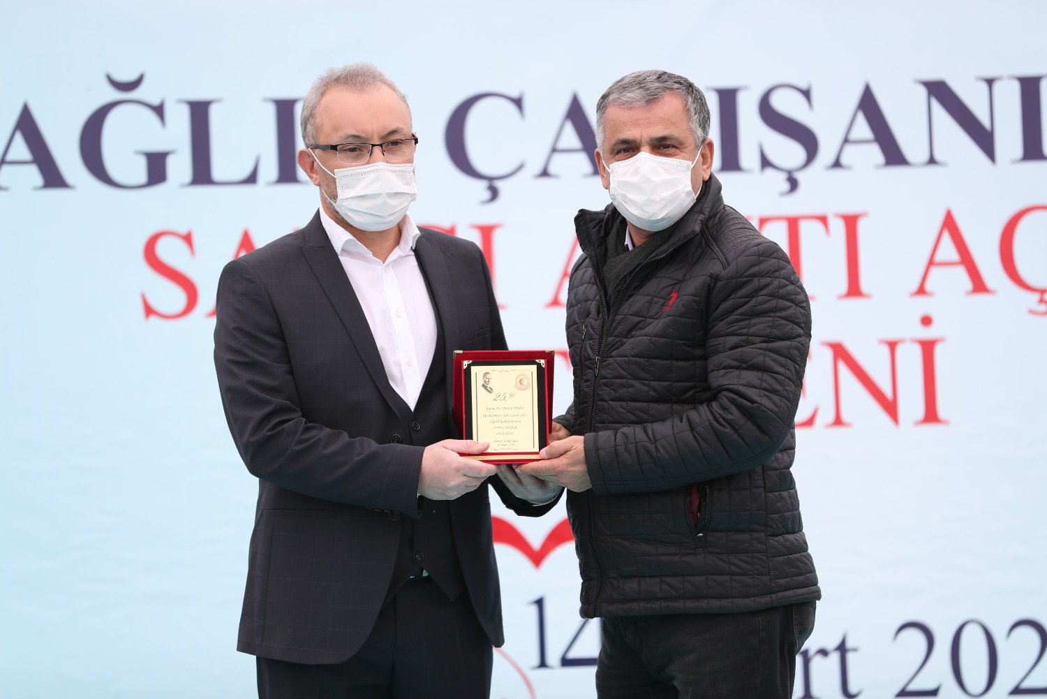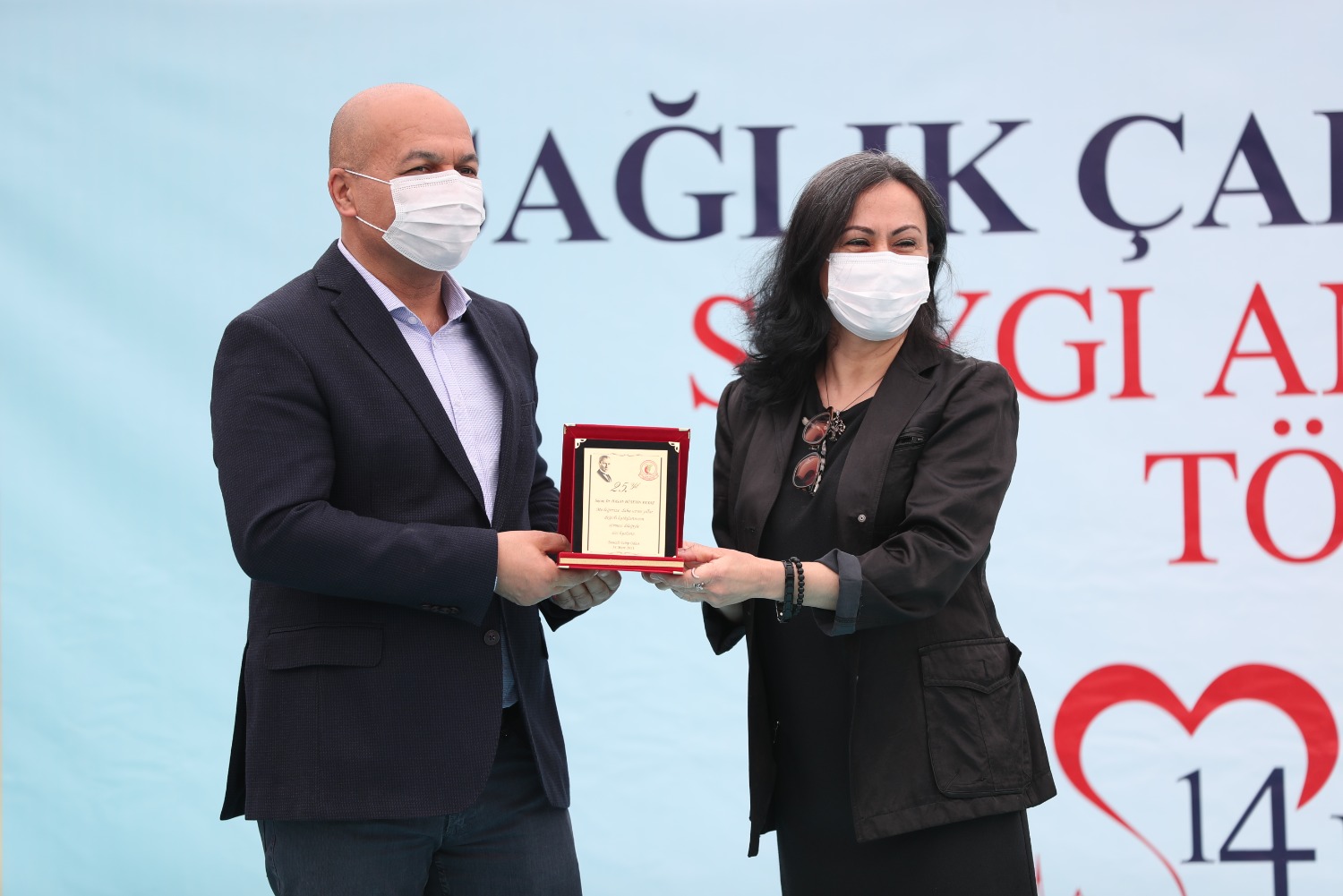 COVİD NEDENİYLE HAYATINI KAYBEDEN SAĞLIK ÇALIŞANLARI ADINA YAPTIRDIĞIMIZ ANITIMIZIN 14 MART TIP BAYRAMI GÜNÜ AÇILIŞINI GERÇEKLEŞTİRDİK VE MESLEĞİNDE 25.40.50. YILI DOLDURAN MESLEKTAŞLARIMIZ İÇİN PLAKET TÖRENİMİZİ YAPTIK.