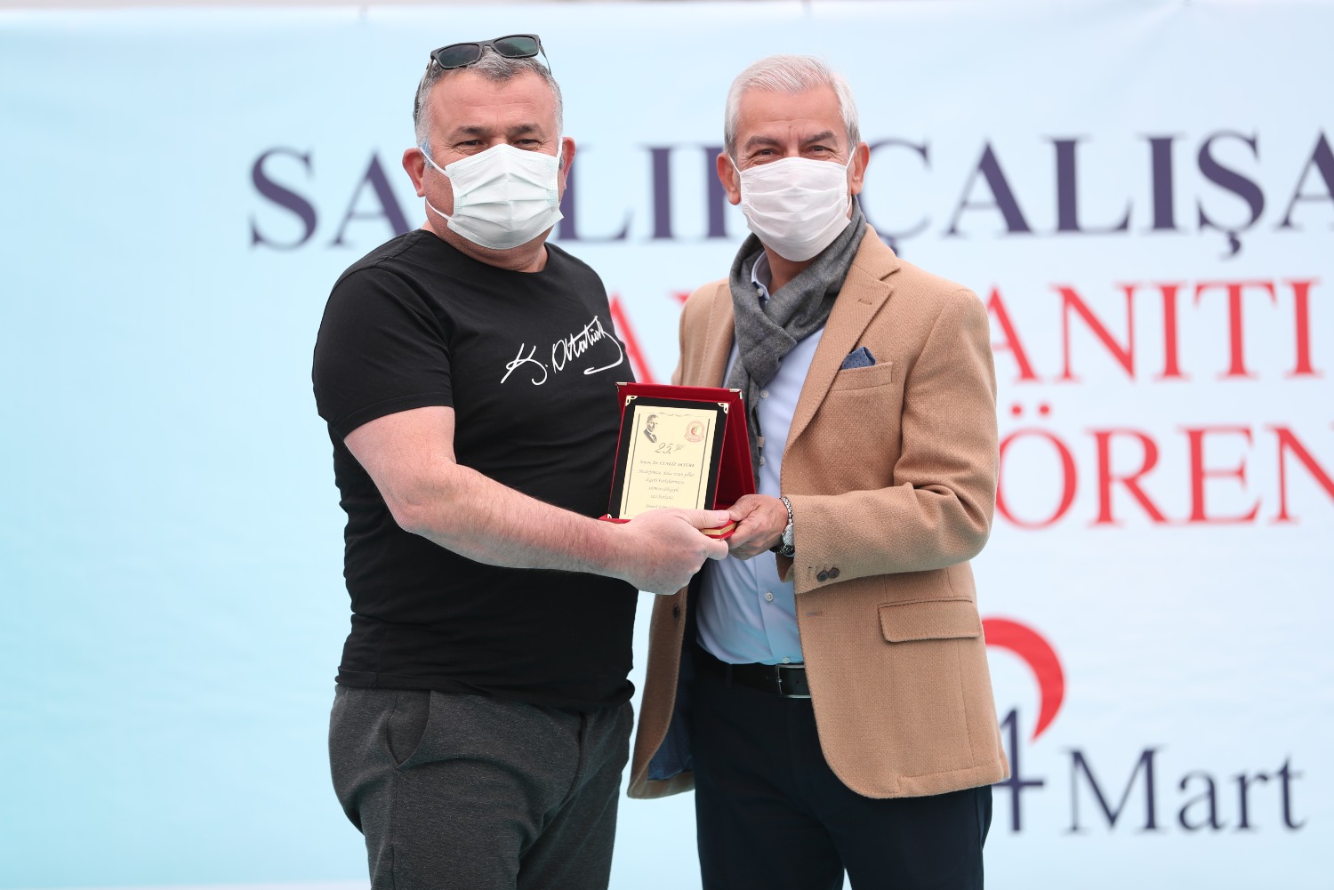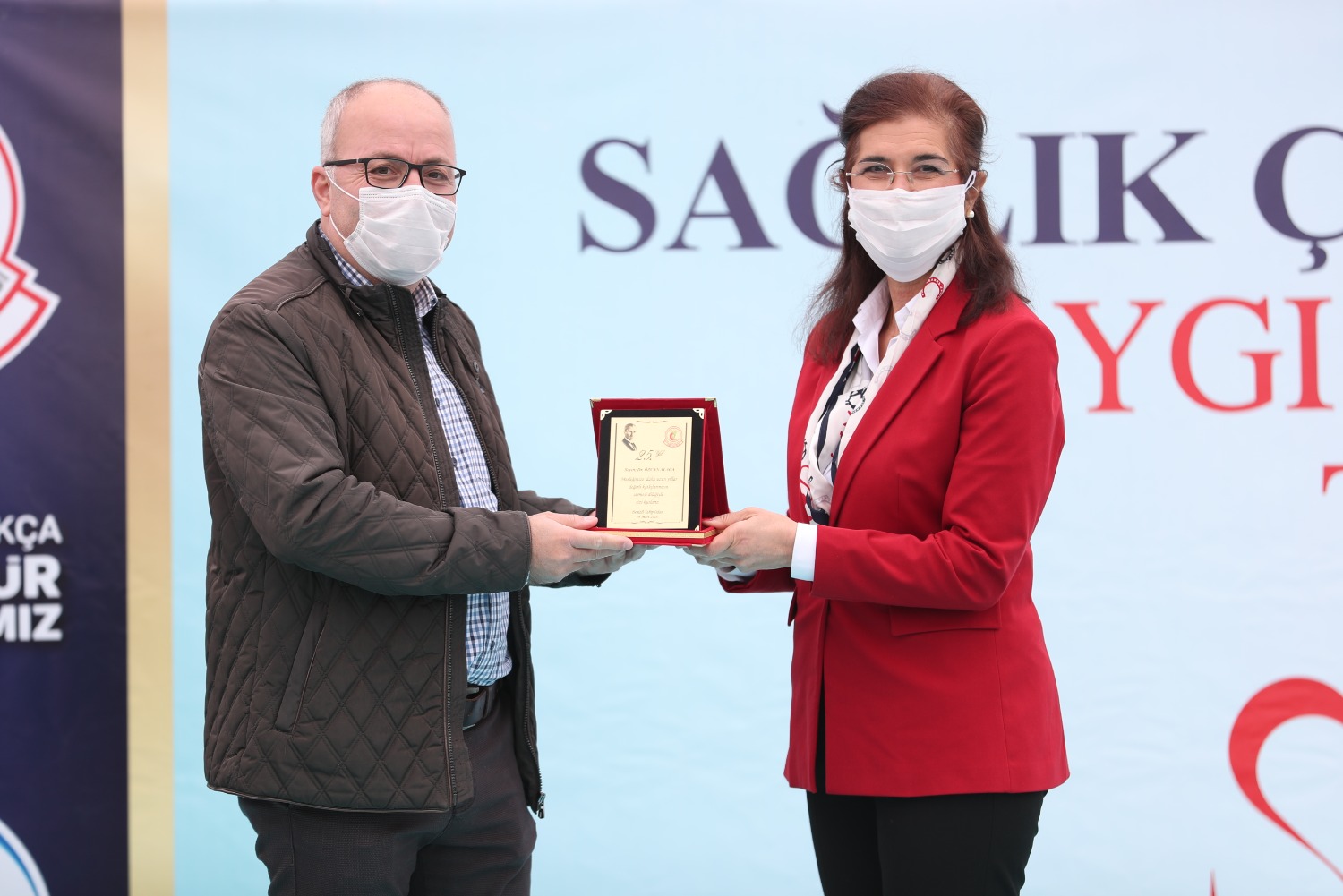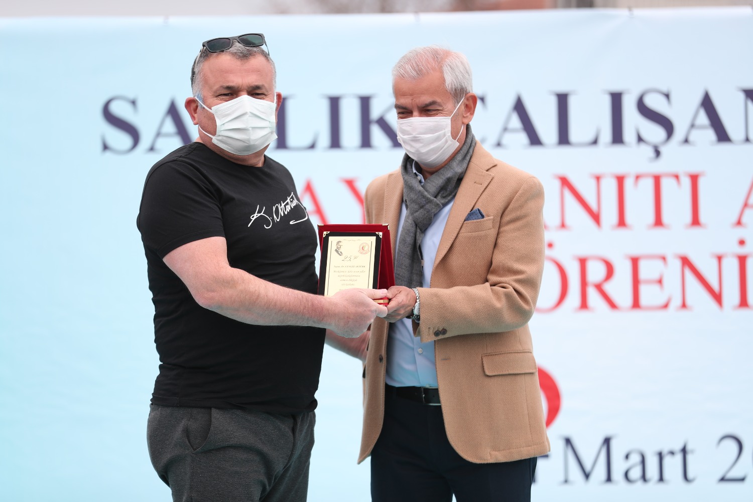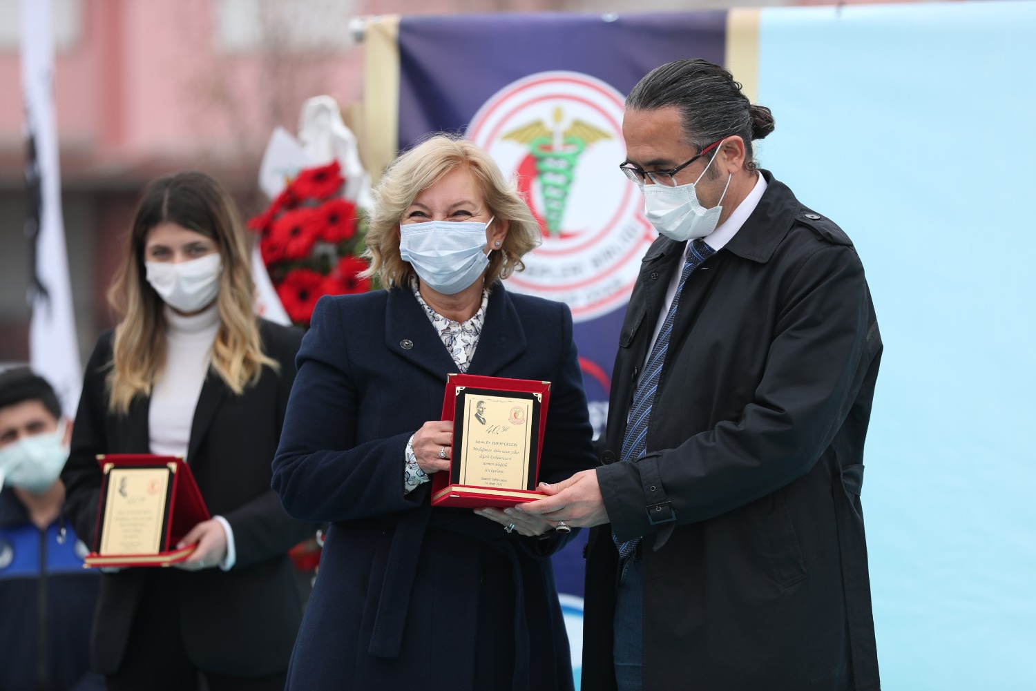 COVİD NEDENİYLE HAYATINI KAYBEDEN SAĞLIK ÇALIŞANLARI ADINA YAPTIRDIĞIMIZ ANITIMIZIN 14 MART TIP BAYRAMI GÜNÜ AÇILIŞINI GERÇEKLEŞTİRDİK VE MESLEĞİNDE 25.40.50. YILI DOLDURAN MESLEKTAŞLARIMIZ İÇİN PLAKET TÖRENİMİZİ YAPTIK.