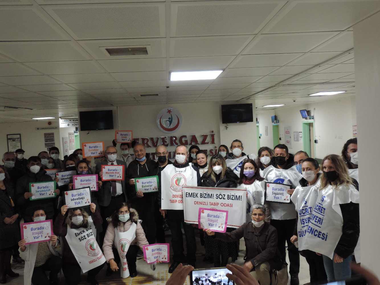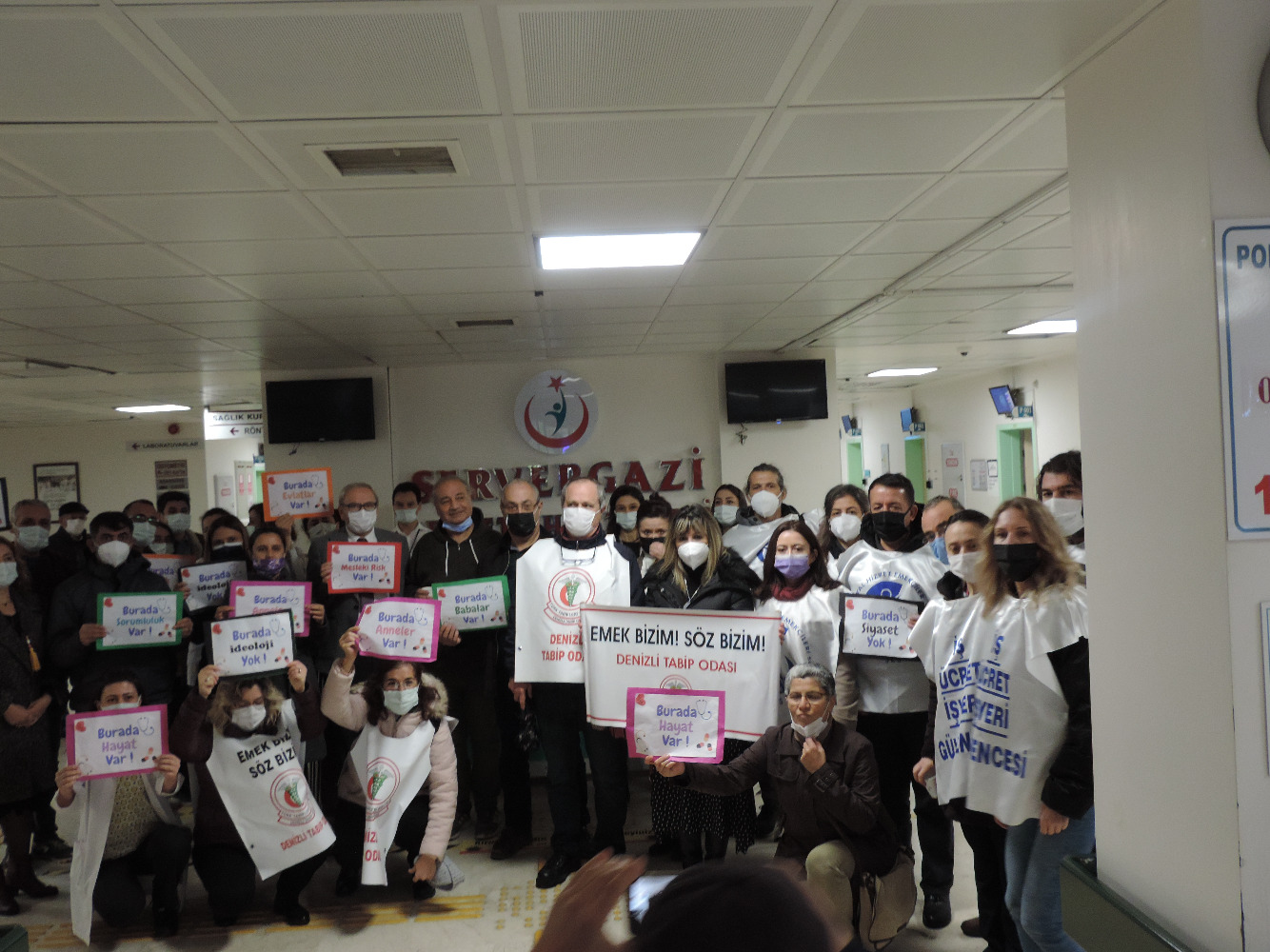 Bu G(ö)REV emeğimize, geleceğimize, halkın sağlık hakkına sahip çıktığımızı gösteren bir uyarıdır. Artık toplumun, sağlık çalışanların çığlığına kulak verilmelidir. Taleplerimiz kabul edilmediği, sağlık çalışanlarının çalışma ve yaşam koşullarını düzeltecek bir düzenleme hızla Meclis’e getirilmediği takdirde eylemlerimiz devam edecektir. İktidar bilmelidir ki söyleyecek sözümüz, değiştirecek gücümüz var.