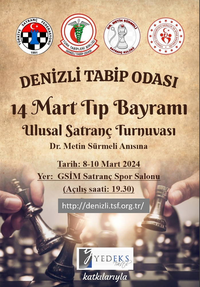 Tıp haftası etkinlikleri 2Ulusal Satranç Turnuvası. Dr. Metin Sürmeli anısına 08-10.03.2024