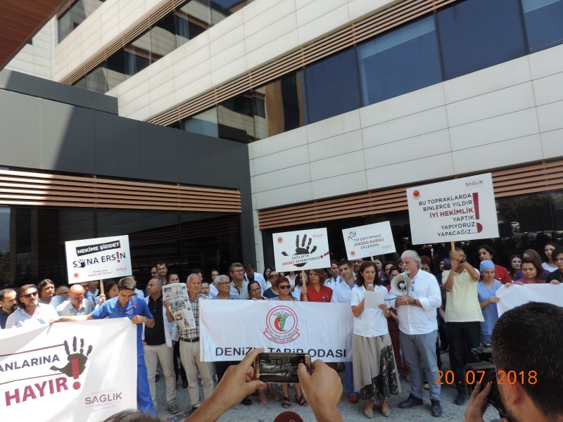 Bu gün yine, bir sağlık çalışanına, eğitim gördüğü üniversitede nöbet tutan bir asistan hekime yapılan şiddete hayır demek için toplandık. Ülkemizde her gün en az otuz sağlık çalışanına fiziksel şiddet uygulanıyor.