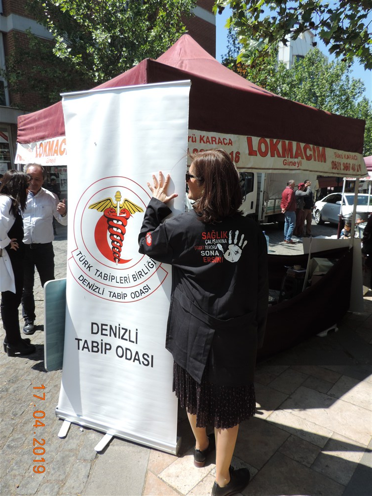 17 Nisan 2019 sağlıkta şiddeti önleme gününde Denizli Tabip Odası olarak işini yaparken, hastaları ve hasta yakınları tarafından öldürülen hekimlerimizi andık. Basın açıklamamıza katılan AKP milletvekili Nilgün Ök Hanıma,CHP milletvekili Kazım Arslan Beye,CHP il başkanı Mahir Akbaba’ya ve yönetim üyelerine Merkezefendi ilçe başkanı Tolga Varlıker’e, Merkezefendi Belediye meclis üyesi Sündüs Başsorgun’a yönetimlerine Çağdaş Yaşamı Destekleme Derneği yöneticilerine, Sağlık SEN, SES,Atatürk Düşünce Derneği yönetici ve üyelerine, Eğitim İş Başkanı Namık Aydoğan’a, Denizli Düşünce Kulubünden Seval Uysal’a, Çağdaş Yaşamı Destekleme Derneği eski başkanı Ümran Aygün’e, Yeni Köy Enstitüleri Dernek Başkanı Ayşegül Odabaşoğlu’na, DOD başkanı Dudu Karaman’a ve tüm STK lara, hekim arkadaşlarımıza, sevgili Denizli halkımıza ve değerli basın mensuplarımıza verdikleri destek için Tabip Odası Yönetimi adına çok teşekkür ederim.